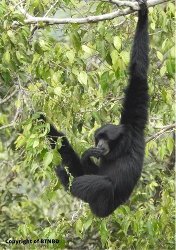 Siamang adalah kera hitam yang berlengan panjang, dan hidup pada pohon-pohon. Pada umumnya, siamang sangat tangkas saat bergerak di atas pohon, sehingga tidak ada predator yang bisa menangkap mereka. Siamang merupakan spesies terancam, karena deforestasi habitatnya cepat. Siamang tidak memliki ekor dan memiliki postur tubuh yang kurang tegak. Siamang juga memiliki perkembangan otak yang tinggi. Siamang berwarna hitam agak cokelat kemerahan. Kera ini memiliki anyaman antara jari kedua dan ketiga.