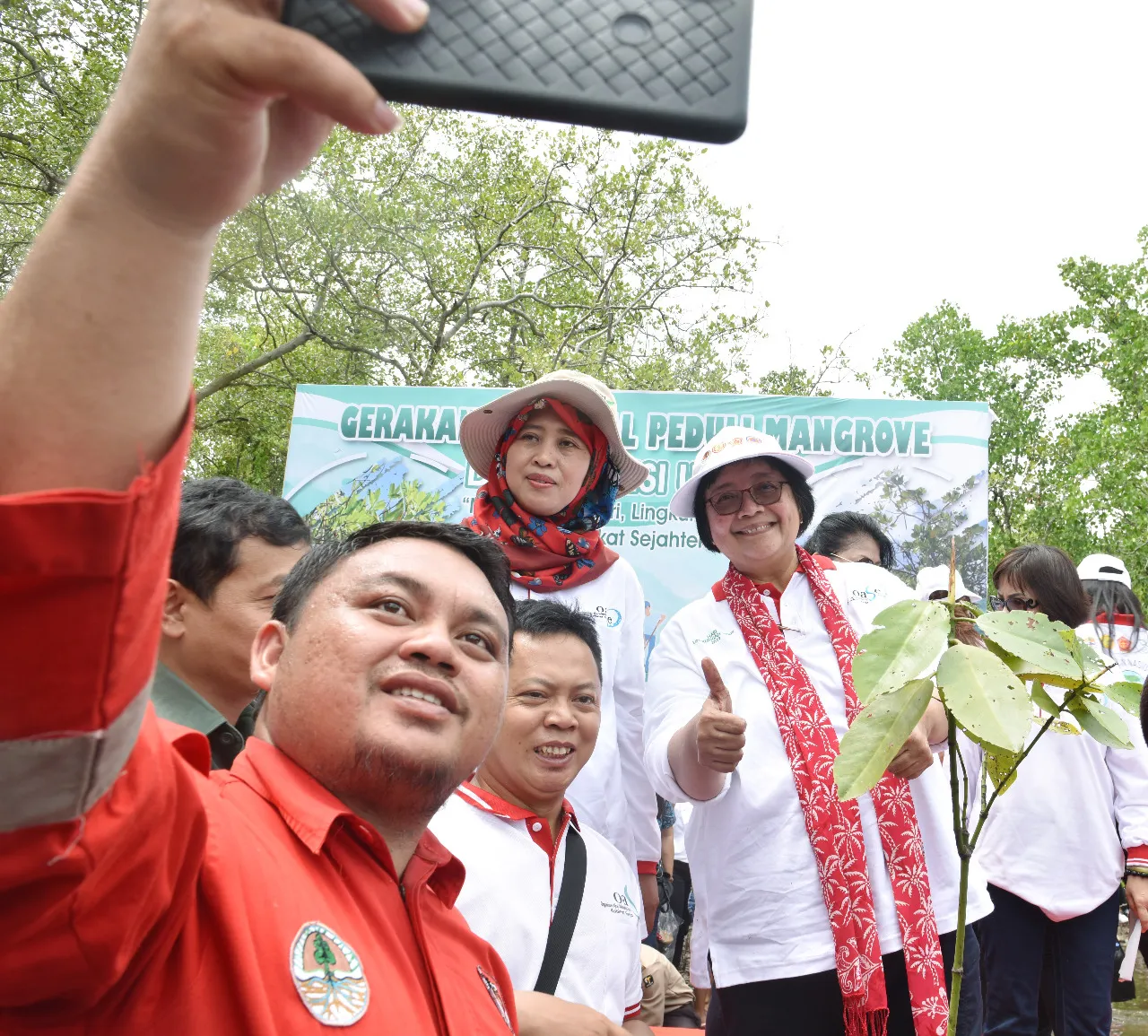 Manado, 9 Juli 2019. Hutan Mangrove Blok Meras Taman Nasional Bunaken menjadi tempat Aksi Penanaman Mangrove Serentak Dalam Rangka Mitigasi Perubahan Iklim dan Bencana. Kegiatan penanaman mangrove dalam rangka Gerakan Nasional Peduli Mangrove, Pemulihan DAS & Kampung Hijau Sejahtera kali ini secara serentak dilaksanakan pada 12 Provinsi di Indonesia yaitu Provinsi Aceh, Riau, Sumatera Barat, Sumatera Selatan, Bangka Belitung, Jawa Timur, Bali, Kalimantan Tengah, Sulawesi Selatan, Sulawesi Tenggara dan Sulawesi Utara menjadi pusat kegiatan ini dimana sebanyak 60.000 batang bibit mangrove ditanam dengan melibatkan jajaran pemerintah daerah, organisasi wanita, unsur TNI-Polri, UPT Kementerian LHK, LSM serta masyarakat.