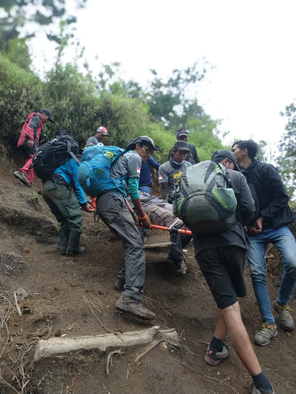 Setelah penanganan awal, kemudian korban ditandu turun menuju kantor Resort Selo. Medan pendakian yang cukup terjal dan sempit pada beberapa bagian serta beratnya korban, sedikit menyulitkan tim evakuasi. Alhamdulillah, berkat kerjasama tim evakuasi yang baik, sebelum gelap, korban berhasil dievakuasi hingga tiba di kantor Resort Selo untuk kemudian dibawa oleh unit tim patroli Balai TN Gunung Merbabu menuju unit pelayanan kesehatan terdekat.